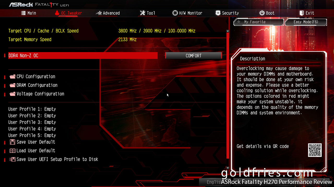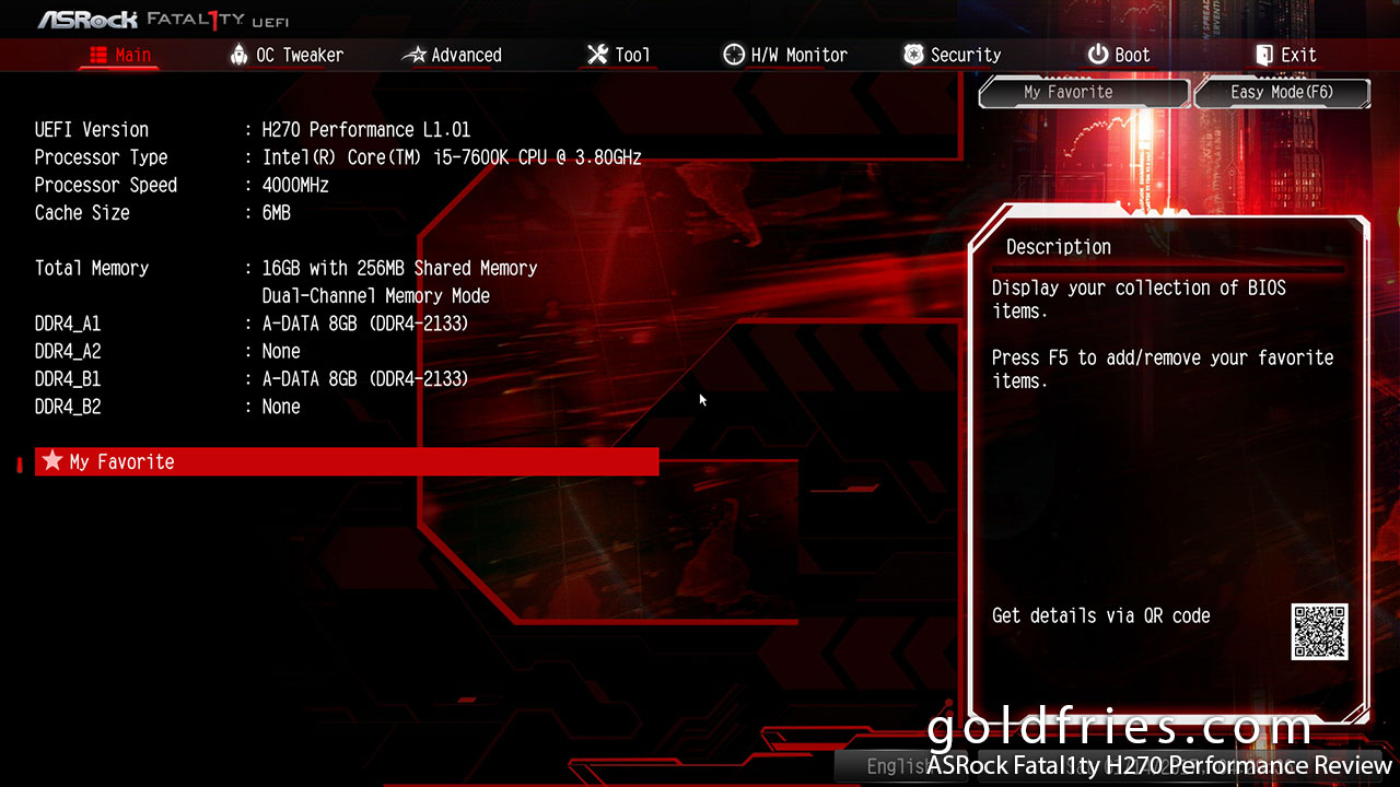 The ASRock Fatal1ty H270 Performance’s UEFI interface is just as with any other ASRock board.